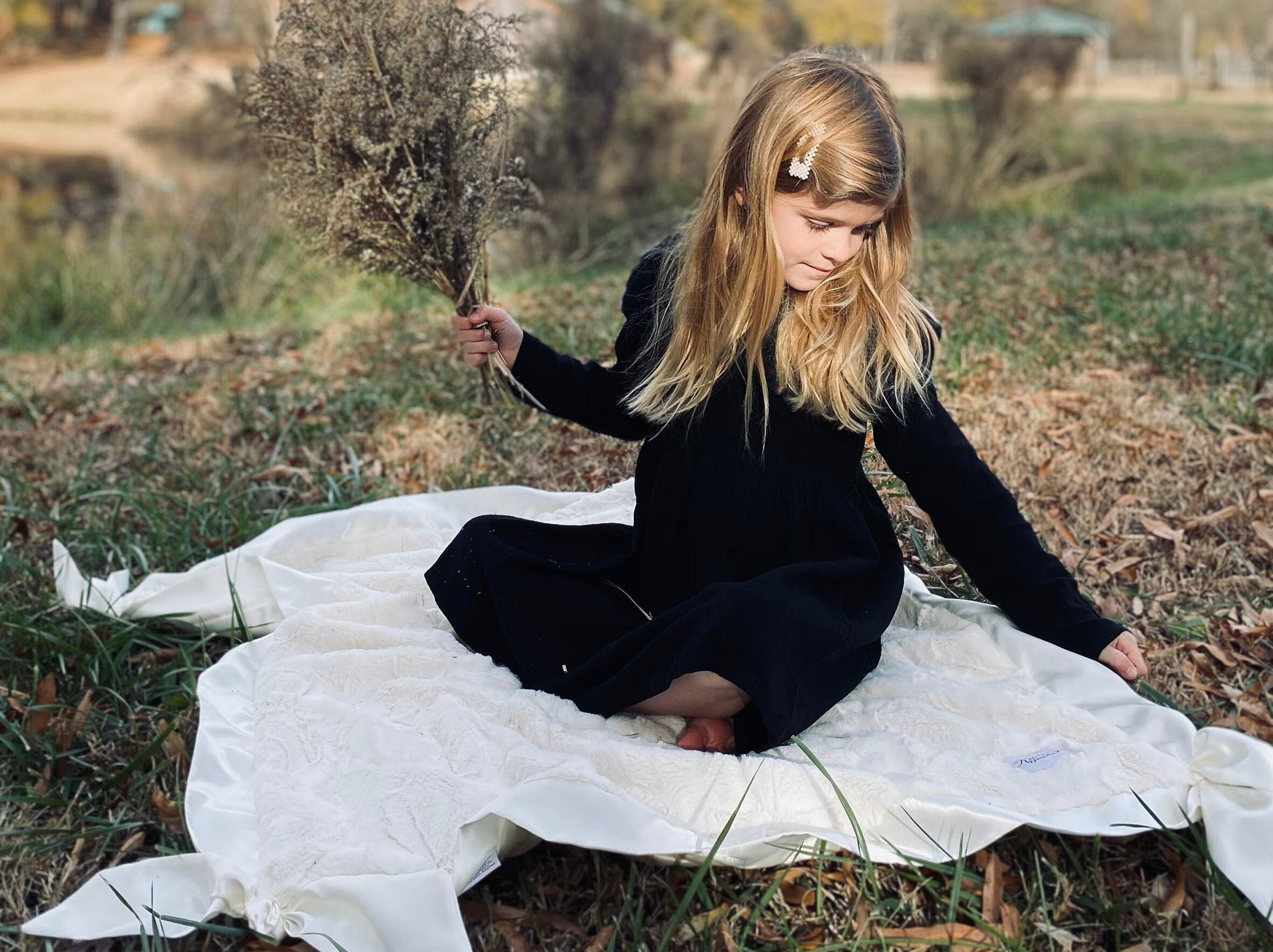 Image of Satin Back Baby's Breath is coming soon. The cream satin shown in the image for the bands and knots is used as the reverse of the blanket as well.
