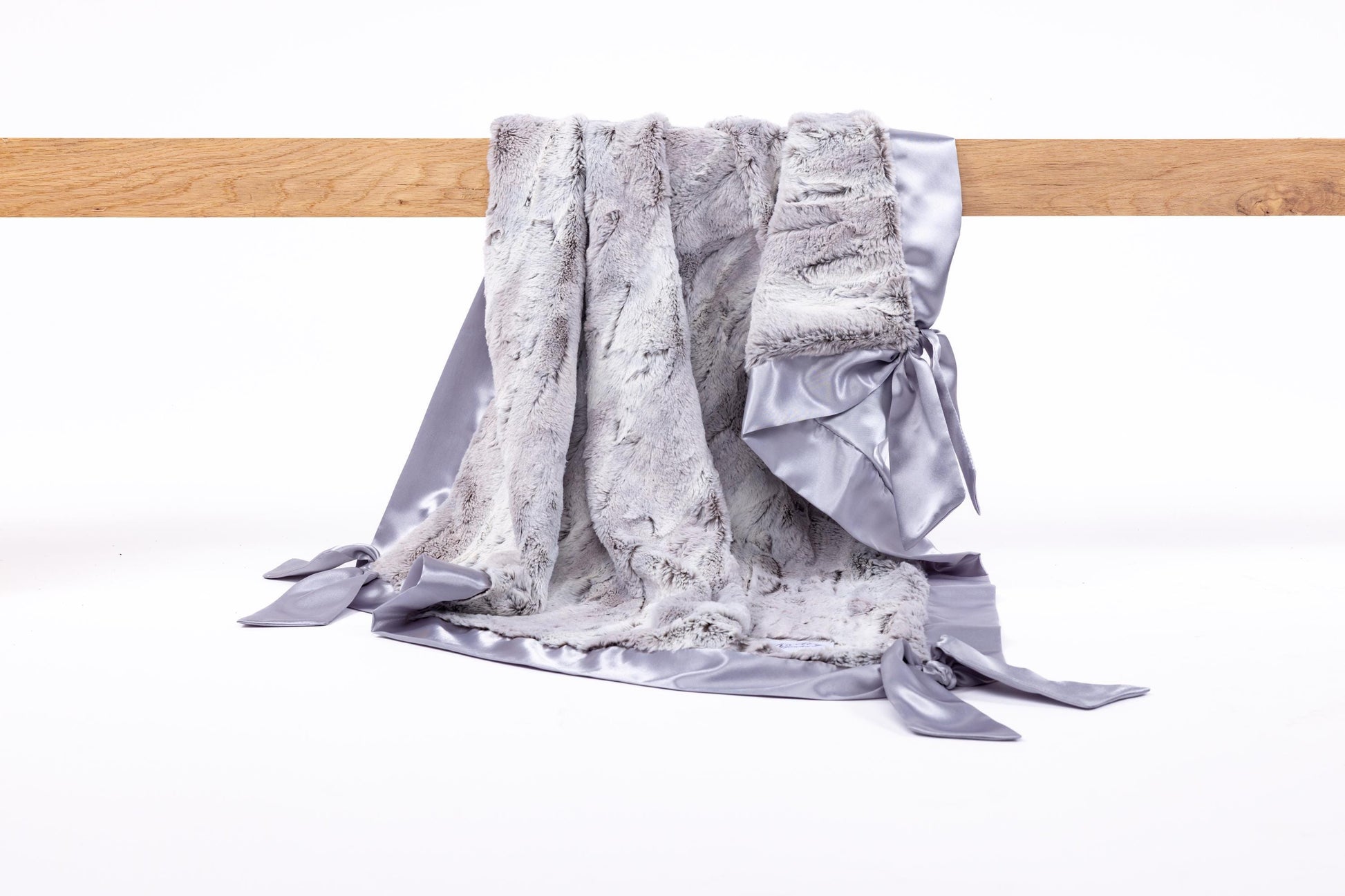 Faux fur is used on the front while our silky satin is used on the reverse making a lighter weight, more drapey blanket. Perfect for the babies who love satin! All four corners are finished with our signature knot. Luxuriously soft, these blankets make the perfect gift and are sure to be treasured!